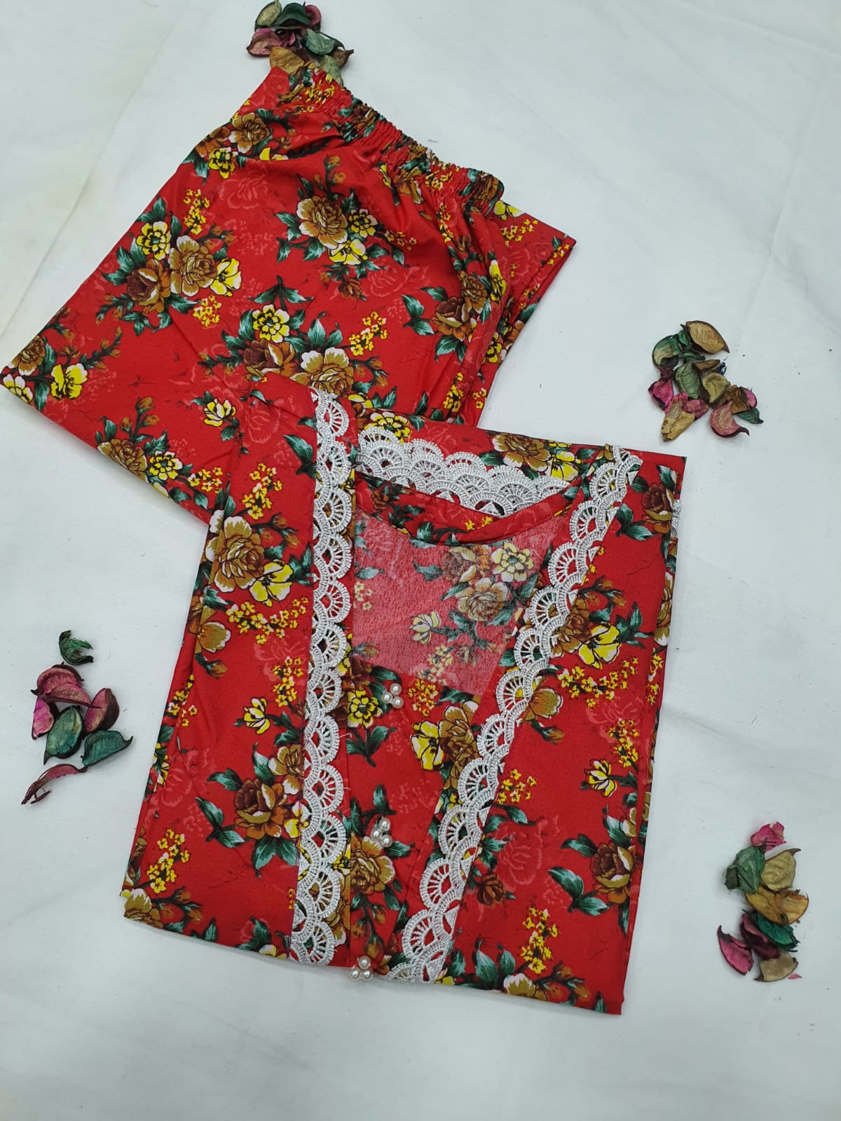 • Design: Sophisticated lace detailing on the shirt for a timeless look