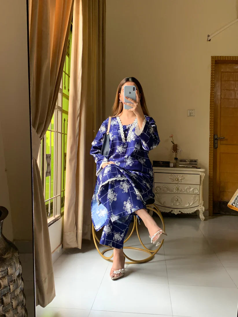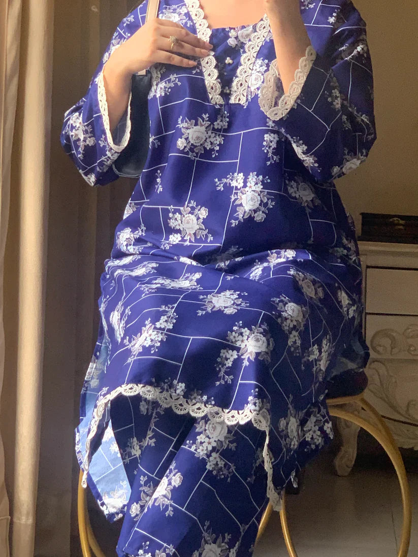 Cotton 2-Piece Stitched Set with Elegant Lace Detailing – Long Length Outfit