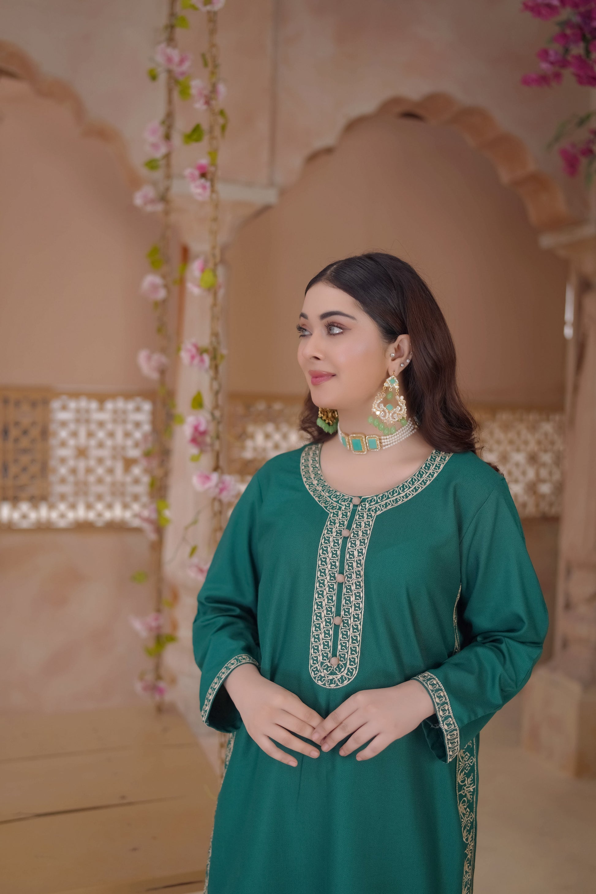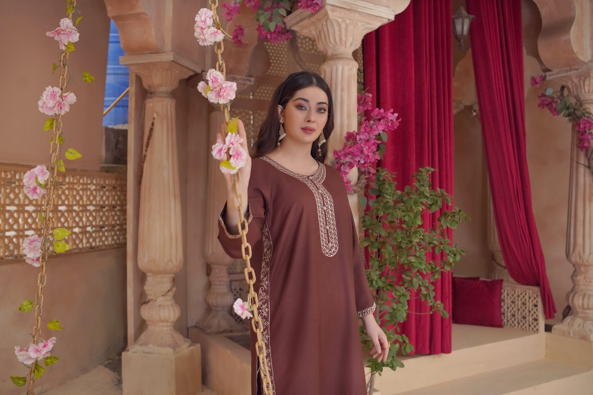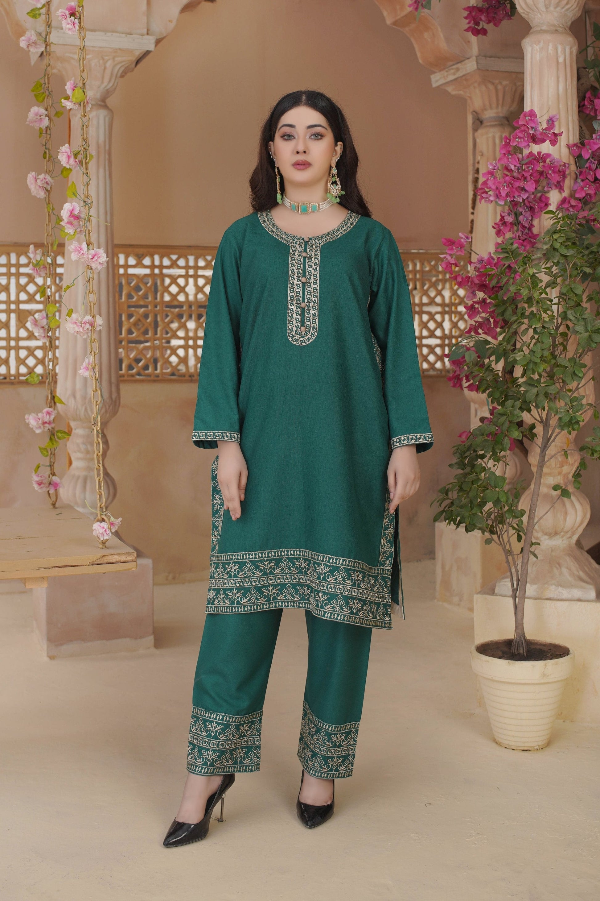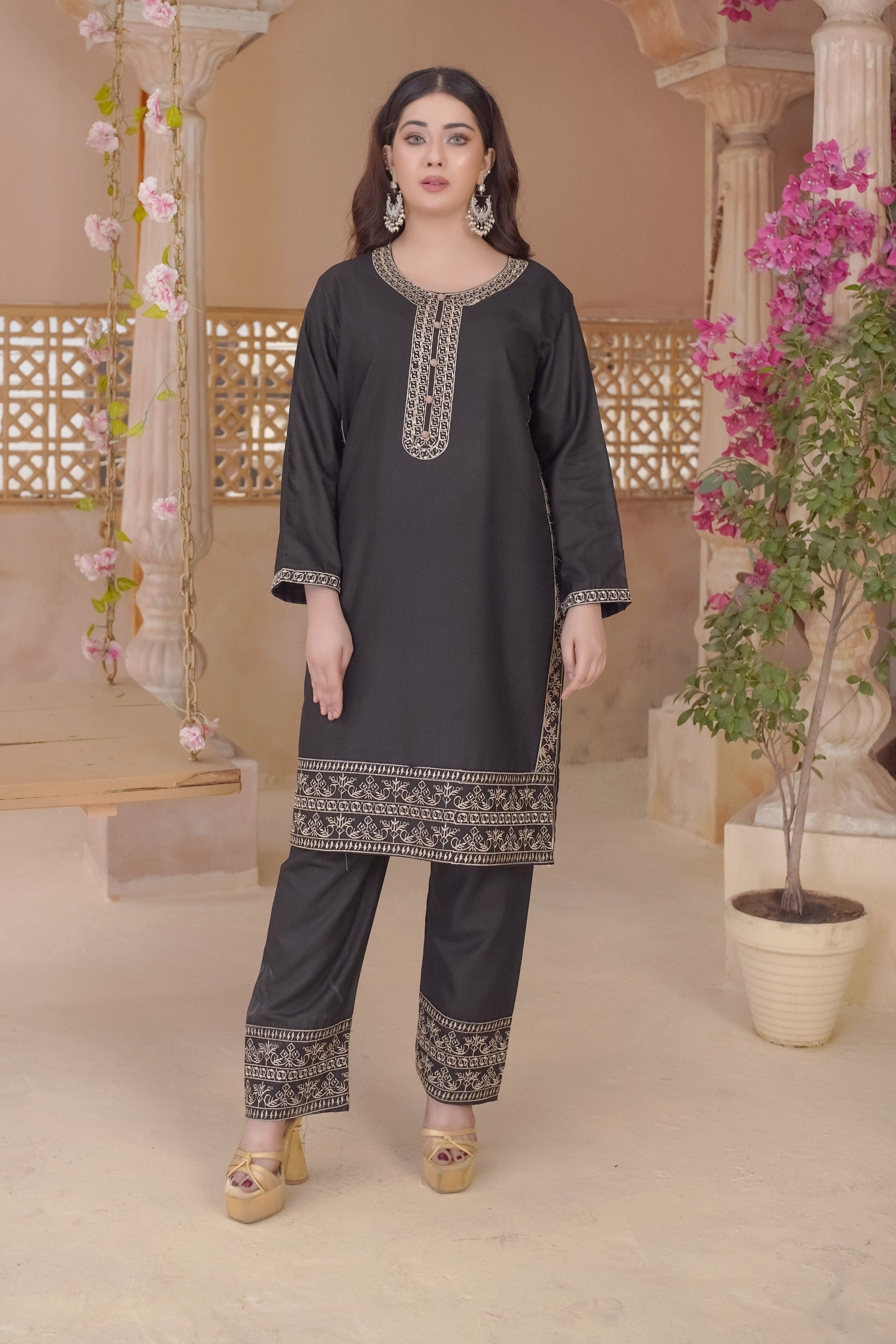 Our 2-Piece Embroidery Collection is available in sizes Small, Medium, and Large, designed for a comfortable and flattering fit.
