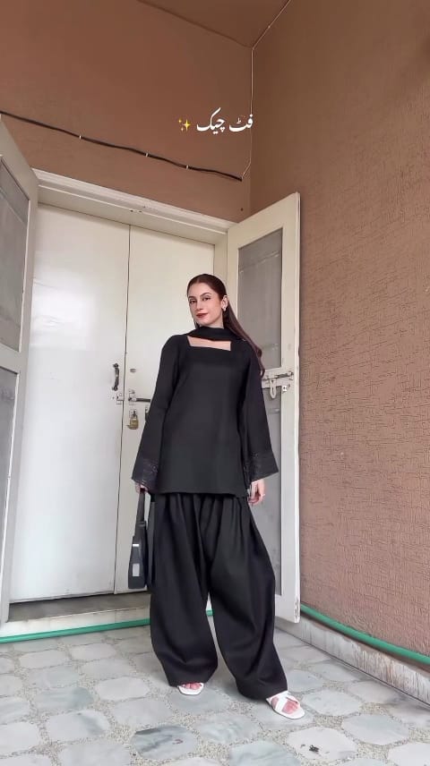Slay with style our black farshi set is here it's perfect for hot weather it's fabric quality is premium and breathable light weight intricate embroidery dealing on sleevs,Shfoon dupta is perfect for styling and easy to carry.